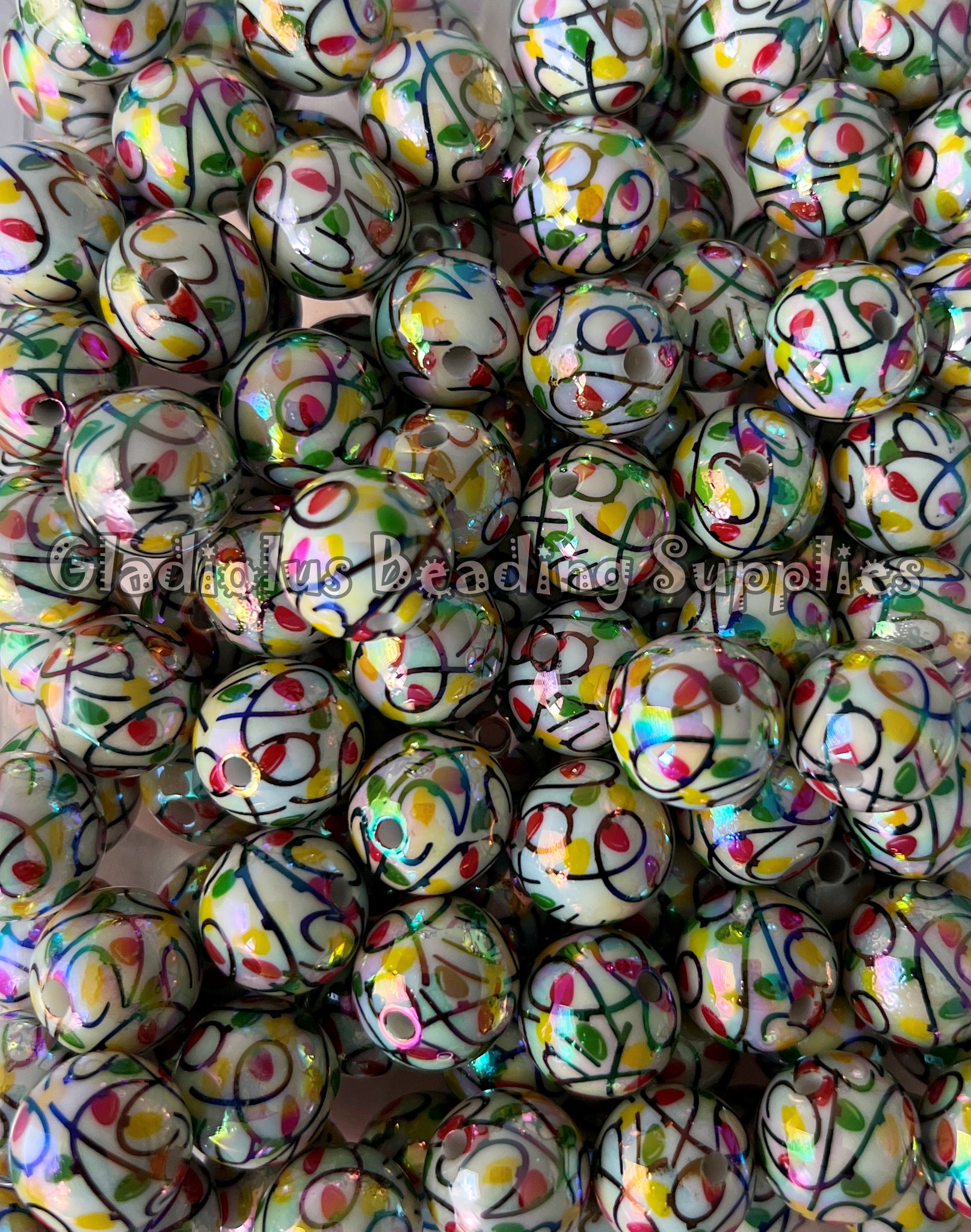 16mm Christmas Light Print Beads - Acrylic Beads - Bubblegum Beads - Chunky Beads