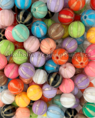 16mm Mixed Striped Beads - Acrylic Beads - Bubblegum Beads - Chunky Beads