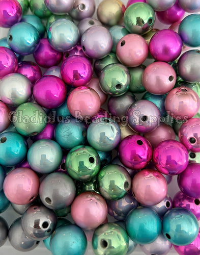 16mm Foil Plating Mixed Beads - Acrylic Beads - Bubblegum Beads - Chunky Beads