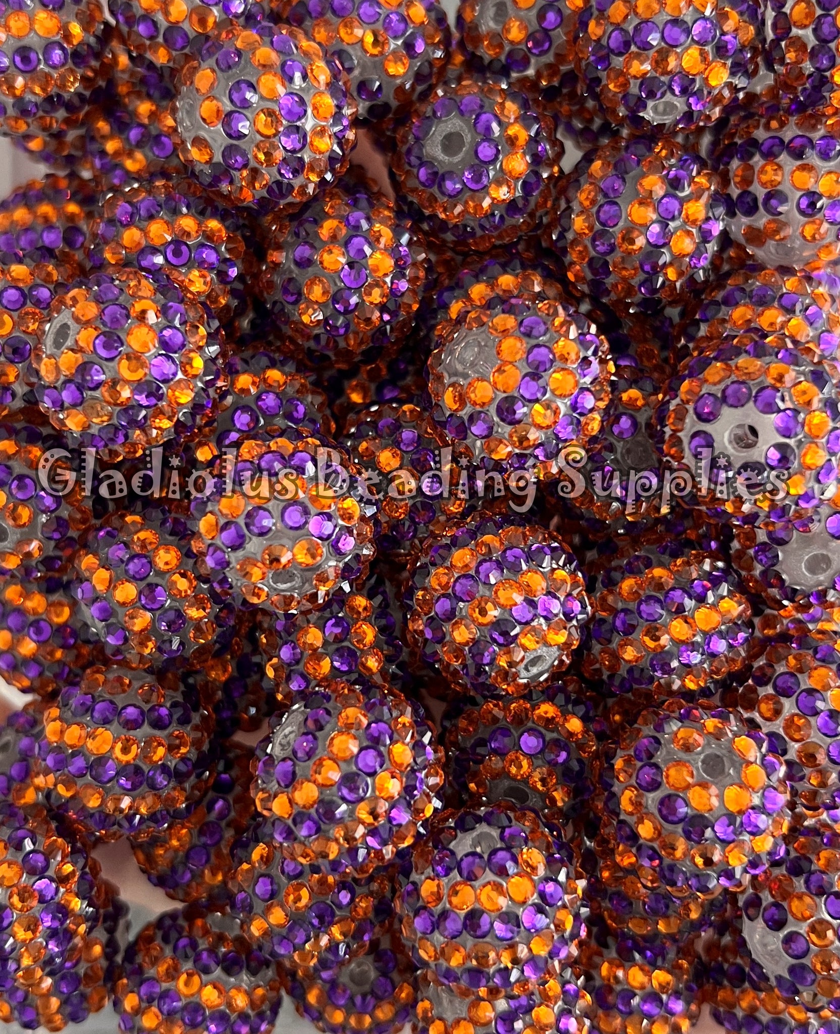 20mm Purple/Orange Halloween Rhinestone Beads - Acrylic Beads - Bubblegum Beads - Chunky Beads